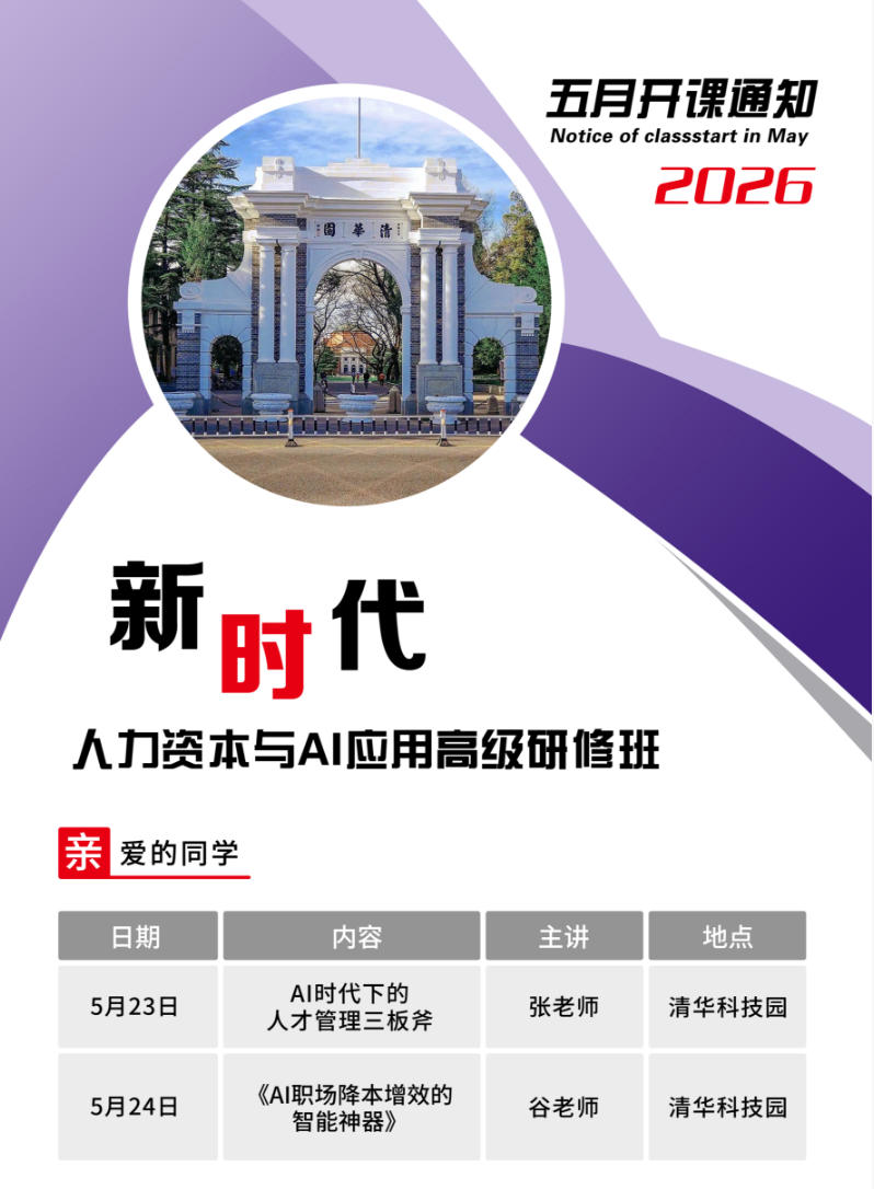 2026年5月23-24日新时代人力资本与AI应用高级研修班_AI时代下的人才管理三板斧_AI职场降本增效的智能神器